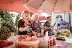 Для проведения ярмарки епархия организовала ярмарочные места, предоставила инвентарь. После поздней литургии началась праздничная музыкальная программа.