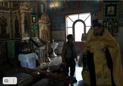 После установки креста и икон был совершен молебен, в котором приняли участие военнослужащие, члены их семей и гражданский персонал. В ходе богослужения были зачитаны молитвы о здравии военнослужащих и членов их семей, а также молитвы о мире в Среднеазиатском регионе. Затем верующие поклонились святыням.