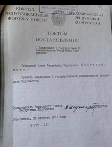 В этот день в 1991 году внеочередная сессия Верховного Совета Кыргызской Республики одной из первых из союзных республик приняла постановление о «Декларации о государственной независимости Республики Кыргызстан».
