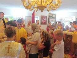Праздничную службу возглавил благочинный протоиерей Сергий Чувичкин, ему сослужили настоятель храма протоиерей Андрей Борисенко и иерей Александр Дмитриев. Прихожане и гости наполнили храм. Царит праздничное настроение, торжественно поется величание празднуемому святому. Радостно видеть среди взрослых множество детей, идущих ко Святому Причастию.