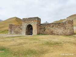 Ранним утром, группа паломников выехала из г. Нарын в сторону границы с Китаем, чтобы посетить древний монастырь XI в., Таш-Рабат. Он находится в 15 километрах от трассы в очень живописном ущелье на берегу одноименной реки Таш-Рабат. Любой христианин, который посещает это место, сразу скажет, что это монастырские постройки, т.к. архитектура постройки соответствующая- алтарь на восточной стороне, купол, фрески, низкие дверные проемы, маленькие кельи, отсутствие больших окон.