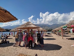 Затем паломники отправились на пляж купаться в озере Иссык-куль, к великой радости взрослых и детей. В конце дня паломники довольные, весёлые, в хорошем, благодатном настроении поехали в г. Балыкчи. По дороге пели и благодарили Господа.