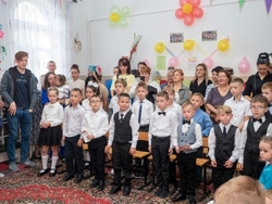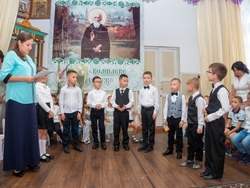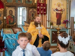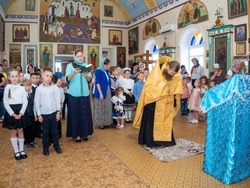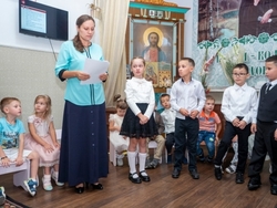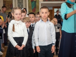 Традиционно праздник начался с молебна на начало учебного года. Весь дружный коллектив детей, родителей и учителей попросили у Бога благословения на учёбу и работу.