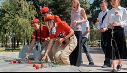 В память о жертвах страшных событий была объявлена минута молчания, затем к памятнику возложили цветы.