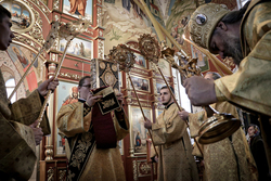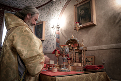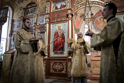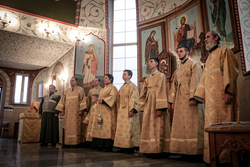 Завершив богослужение, Его Преосвященство совершил славление преподобному Амвросию Оптинскому.