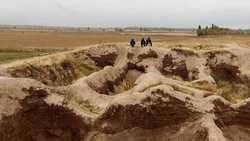 Послушав рассказ про город, группа направилась в с. Ак- Бешим, на археологические раскопки древнего города Суяб. Посмотрев карту городища, и выслушав рассказ про восточную церковь и историю города, ребята прогулялись по территории которая находится под защитой организации ЮНЕСКО.