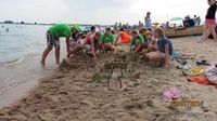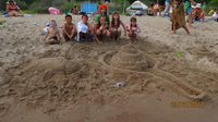 Еще одним из самых запоминающихся конкурсов было строительство замков из песка. Участники с таким восторгом и энтузиазмом принялись за работу, что спустя час на берегу вырос целый песочный город. Фантазия строителей позволила создать много интересных и причудливых построек, среди которых были даже рыбы и черепахи. У каждого замка была целая история, которую с большой охотой рассказывали всем желающим сами создатели этих песчаных шедевров.