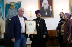 В завершении встречи протоиерей Андрей Кунавин вручил Михаилу Игоревичу Архиерейскую грамоту в благодарность за понесенные труды на благо Бишкекской епархии. Хасьминский в свою очередь поблагодарил владыку Савватия за приглашение посетить Кыргызстан и выразил надежду на дальнейшее сотрудничество.