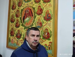 В старинном и величественном, деревянном храме архангела Михаила мы встретили настоятеля храма, батюшку Александра (Пелина), он как раз закончил налаживать отопление в храме, и, к нашей радости рассказал нам более подробную историю храма и ответил на некоторые вопросы паломников, так что все увидели в этом (изменении программы) промыслительную руку Господа.