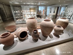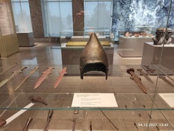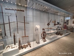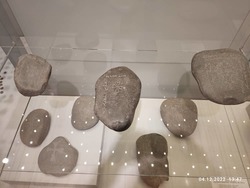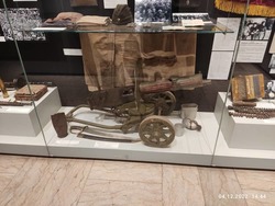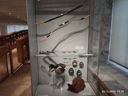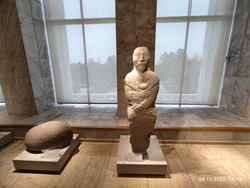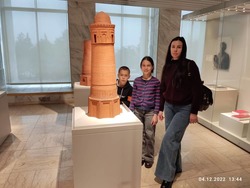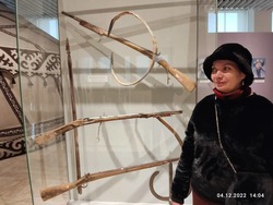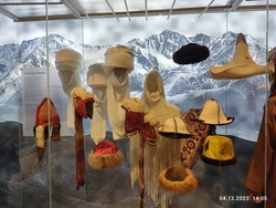 Но время неумолимо идёт и мы двигаемся дальше, спускаемся в город и останавливаемся на центральной площади Ала-Тоо. Здесь мы посетили государственный исторический музей Кыргызской республики, который в советское время назывался музей имени Ленина. Осмотр мы начали со второго этажа, где увидели артефакты XI-XIIвв. Это были кайраки, балбалы, хумы, горшки, кувшины и много разных древних предметов быта и элементы вооружения. На третьем этаже была собрана коллекция экспонатов XII-XVIIIвв., где, кроме обычных предметов быта из глины и бронзы, уже появились книги и работы из войлока и кожи. На четвёртом этаже собраны предметы конца XIX начала XX века, эти предметы нам уже немного знакомы, это шинели и буденовки революционеров, прялки, другие предметы быта и мебель первых руководителей республики, дополненная множеством фотографий. Ну а на пятом этаже коллекция конца XX века нас просто порадовала, мы с восторженной радостью увидели товары советского производства - кожаная красивая обувь фабрики «Чолпон», детские сандалии (те самые, которые мы носили в детстве!), трикотажные детские костюмчики, детская шуба из натуральной овчины и многое другое. Отдельный стенд с костюмами и личными предметами нашей известной балерины Бюбюсары Бейшеналиевой.
