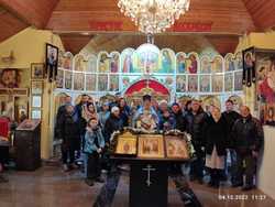 Группа паломников отправилась в село Таш-Дебе, бывшую Воронцовку, в храм Покрова Пресвятой Богородицы. Наш путь пролегал через утренний город на юг, в сторону гор, и чем ближе мы приближались к горам, тем выше поднимались над городом. В небольшом и уютном храме мы заказали требы, приложились к святыням и началась праздничная служба. В конце службы о. Александр Белоусов, а за ним и все прихожане, коленопреклоненно упрашивали Божию Матерь о мире во все мире. После причастия Святых Христовых Таин батюшка всех поздравил и произнес трогательную проповедь. На прощание мы сделали общую фотографию и поехали по программе в мемориальный комплекс «Ата-Бейит», что в переводе с кыргызского означает «могила отцов», который был построен в 2000 году по инициативе Аскара Акаева в память о жертвах репрессий в 1930-40 годы. Здесь же находится могила известного писателя Чингиза Айтматова. Мы прогулялись по территории комплекса, который находится ещё выше в горах и откуда открывается панорама на город Бишкек. В это зимнее время город плохо видно из-за смога, но за то радует глаз вид на снежные горы и воздух здесь чистый и свежий. Мы беседуем на разные темы, дышим этим горным воздухом и не хочется спускаться вниз...