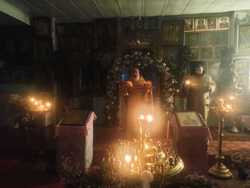 Приехала матушка Никона с певчей Галиной и началось всенощное бдение. На улице в полной тишине медленно и красиво кружил снег и было ощущения какого-то сказочного волшебства или чего-то таинственного.