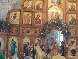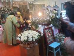 Почти все многочисленные гости и прихожане вышли встречать епископа Савватия. Дети встречали дорогого владыку хлебом и солью. Архиерей всех благословил и началась торжественная, праздничная, Божественная литургия. Храм был наполнен молящимися.