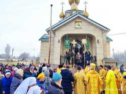 После завершения службы был совершен крестный ход, архиерей кропил святой водой все стороны света - стены храма, территорию и прихожан. А во время чтения Евангелия, владыка по своему обычаю, возлагал Слово Божие на главы верующих и все с радостью старались подойти ближе, чтобы и на их главе читалось Святое Евангелие.