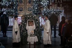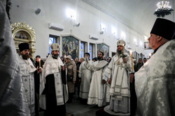 По завершении Великого повечерия, епископ Савватий сердечно поздравил с наступлением сочельника и обратился с архипастырским словом к духовенству и прихожанам собора.