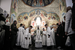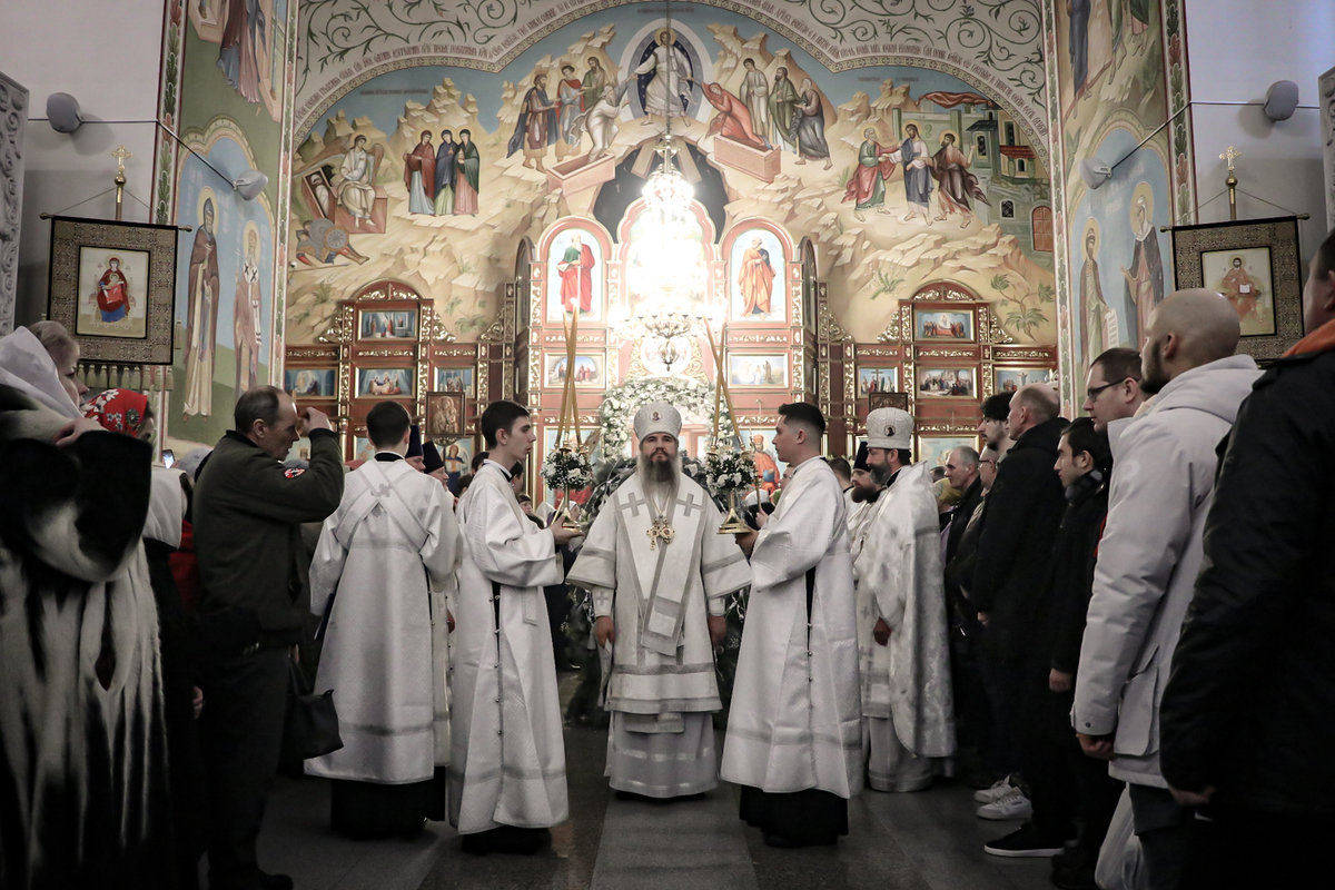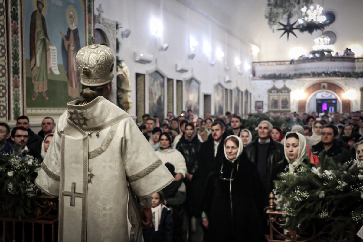 В завершение ночной Литургии глава Бишкекской епархии поздравил верующих с праздником Рождества Христова и огласил послание Святейшего Патриарха Московского и всея Руси Кирилла.