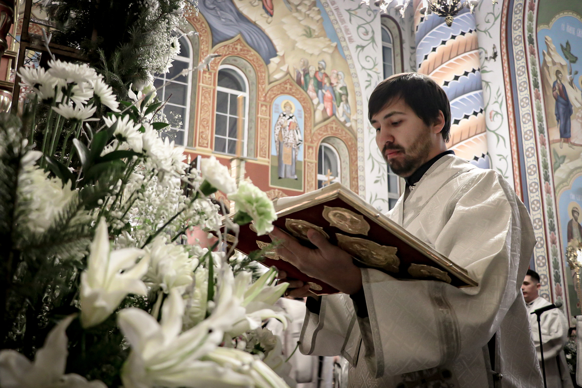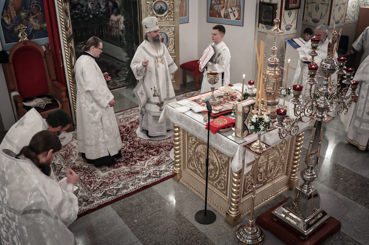 По запричастном стихе иерей Георгий Дворовой зачитал Рождественское послание Главы Среднеазиатского митрополичьего округа митрополита Викентия.