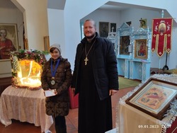 Первое место занял участник Олег Куликов. Второе место – Юлия Куликова. Третье место Дарья Малышева. Каждый из этих трёх участников получил призовую медаль со своим удостоверением, небольшие подарки в виде шоколадки и шоколадных конфет, победитель же ещё набор игровых шашек. Другие участники, не занявшие призовые места, тоже получили утешительные призы в виде шоколадки и шоколадных конфет. Все призы были подготовлены группой прихожан храма совместно с казаками.