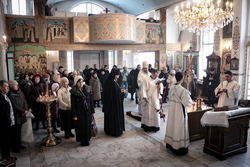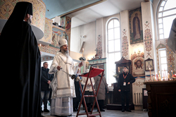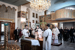 Перед началом панихиды епископ Савватий обратился к собравшимся с архипастырским словом, в котором говоря о сложном и страшном военном времени подчеркнул, что Сам Господь попускает человеку тесные обстоятельства. Владыка упомянул о Рождения Господа нашего, когда Царь Вселенной родился в загоне для скота. «После Рождения нашего Спасителя, царь Ирод, имея злобу на Христа, принял решение погубить 14 000 младенцев, в надежде, что среди них может оказаться Христос. Семья вынуждена была бежать в Египет, но и там не имела покоя. Затем, до 33 лет Господь работал простым плотником. Даже одного этого достаточно чтобы понять, какие тесные условия жизни были у Христа. Поэтому в тесных обстоятельствах есть определенный смысл». Развивая тему о смысле трудностей, владыка отметил: «Те, кто были на войне, часто вспоминают, что им там было лучше, потому что существовало истинное братство и взаимопомощь. С одной стороны бушевало горе, с другой проявлялось наивысшее благородство человеческой души. Люди помогали друг другу. Кто-то материально, кто-то воинским подвигом, кто-то создавал Симфонию, а кто-то сделал так, чтобы во время концерта ни один снаряд не упал на здание театра».