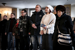 На панихиду, в Свято-Воскресенский кафедральный собор прибыли: Председатель Кыргызского общества блокадников Ленинграда Марат Кутанов, блокадники, секретарь общества Светлана Аристова, представитель Русского дома РФ в КР Альберт Зульхарнеев, военные базы ОДКБ «Кант», участники ветеранского хора «Красная Гвоздика», представитель городского совета ветеранов, потомки – дети и внуки блокадников.