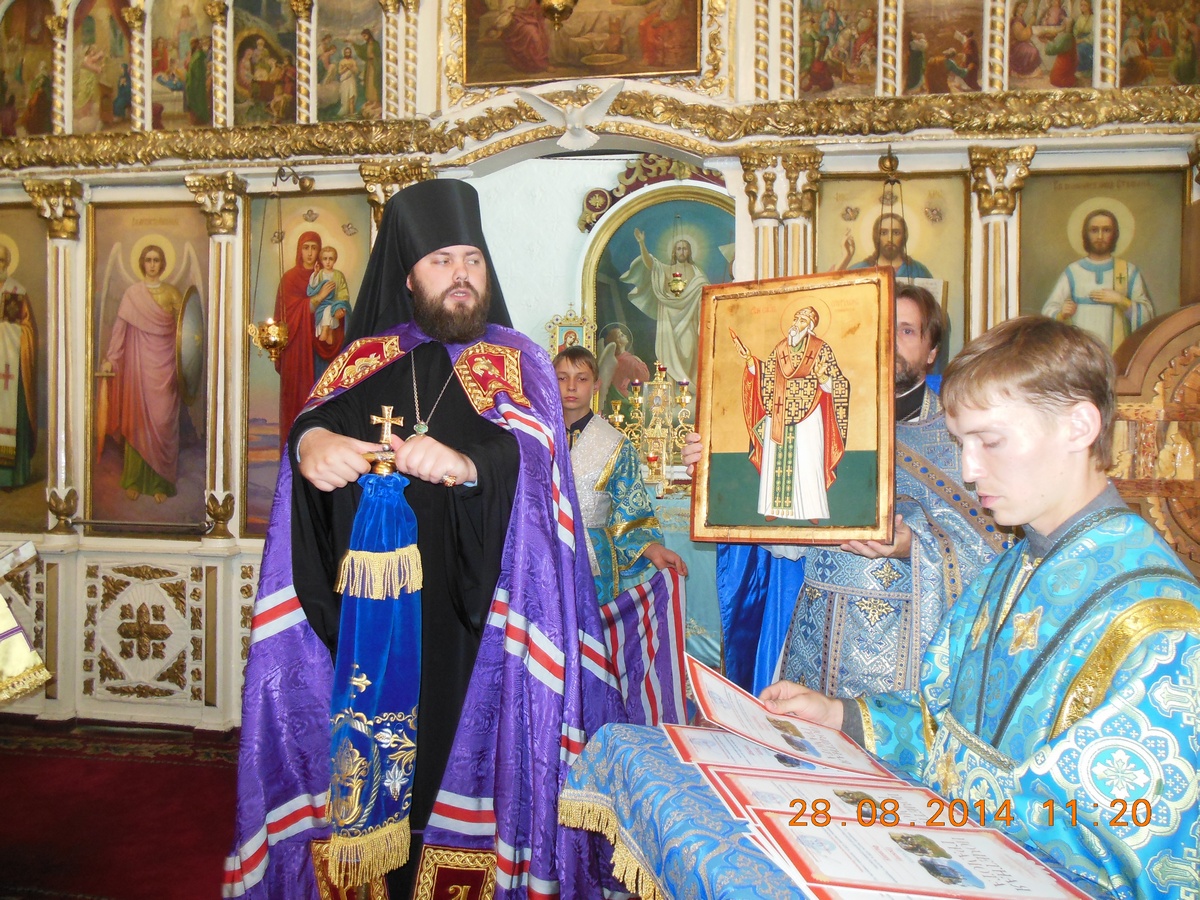 По окончании Божественной Литургии в честь Успения Пресвятой Богородицы владыка Даниил поздравил прихожан с великим праздником и представил икону Святителя Спиридона Тримифунтского, прибывшую накануне в Бишкек прямо из Греции: