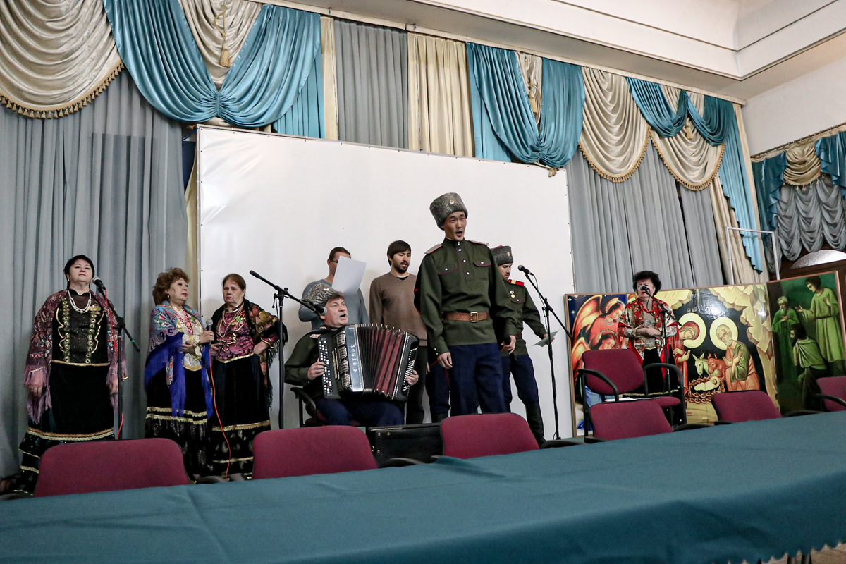 Начался круг с концертной программы, которую подготовил народный хор «Станица Бишкекская» под руководством В. Белкина. Затем к казакам с напутственным словом обратился епископ Савватий.