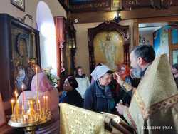 После акафиста батюшка помазал всех маслом с лампадки преподобного Серафима и обратился к молящимся с проповедью, обращая внимание верующих на собственное внутреннее состояние души каждого.