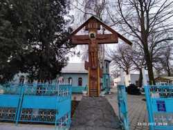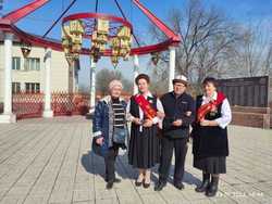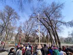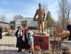 Сделав общее фото с администрацией мэрии и героями различных военных действий, мы поехали в город Шопоков. Здесь, в центре небольшого городка, в парке, установлен поклонный крест всем погибшим воинам. Этот крест установил в своё время митрополит Ташкентский и Среднеазиатский Владимир (Иким).