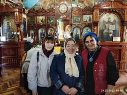 В нашей группе тоже была именинница Галина, это почётная гостья в нашей поездке Гульнара Дегенбаева - Мама дружной, многодетной семьи, директор детского дома «Мээрим Булагы» на Светлом мысе, замечательный человек и просто наш друг. Батюшка вручил Гульнаре цветы и подарки, и немного рассказал прихожанам о непростой судьбе этой сильной и удивительной женщины. В свою очередь Гульнара тоже поделилась своими впечатлениями о сегодняшних событиях и о храме.