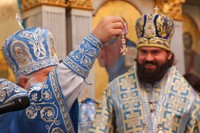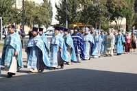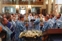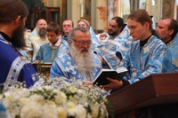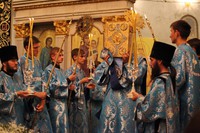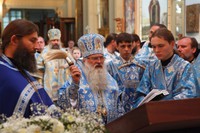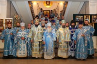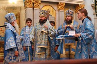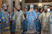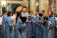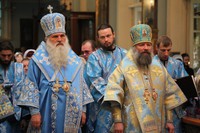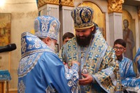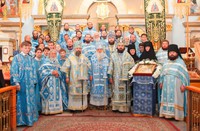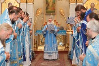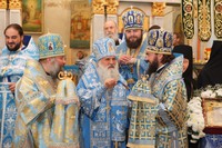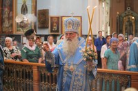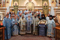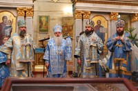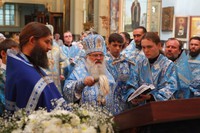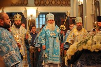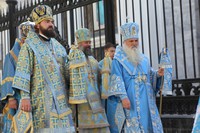 Архиереи и духовенство крестным ходом проследовали от здания Духовно-административного центра епархии до храма, где сразу же началось Богослужение. В конце Литургии был совершен молебен ко Пресвятой Богородице и прочитана молитва перед почитаемым в этот день Ее честным Образом «Владимирская». После молебна митрополит Викентий освятил новую икону святого благоверного великого князя Александра Невского.