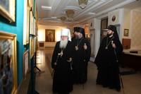 Владыка выразил благодарность архиереям данных епархий за общую молитву в столь значимый для СМО день, наградил орденом святителя Луки (Войно-Ясенецкого), почетной наградой СМО, архиепископа Феофилакта, а также поздравил епископа Даниила с назначением на Бишкекскую кафедру.