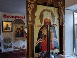 В храме блаженной Ксении Петербургской г. Балыкчи приложились к святыням, пропели тропарь Кресту пред копией Годеновского креста и написали записки.