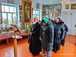 Рано утром в Прощёное воскресенье мы выехали в село Ананьево, в храм святителя Николая Чудотворца. По дороге слушали последование ко святому причащению и поэтому путь показался для нас быстрым, хотя снег немного припорошил дорогу. Мы приехали рано и народ ещё не собрался. Митрофорный протоиерей Виктор (Журавлёв), настоятель храма святителя Николая Чудотворца, предложил нам почитать акафист Пресвятой Богородице нараспев. После него мы ещё прочитали нараспев акафист святителю Николаю, и затем Иисусу Сладчайшему.