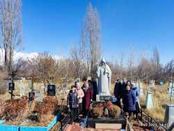 Батюшка благословил нас на дорожку и мы поехали на кладбище, к могилке преподобного Ираклия Иссык-Кульского.