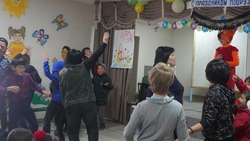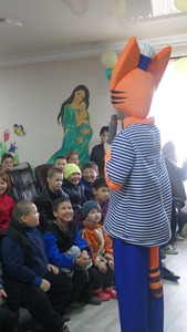 По инициативе ДУМК для детей было организовано выступление детских аниматоров. После окончания представления для детей КСОШ-И были переданы фрукты и сладкие подарки.