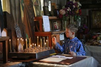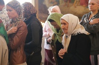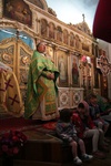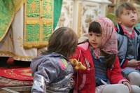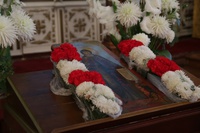 Перед таинством Причастия к верующим обратился настоятель храма Рождества Пресвятой Богородицы села Ленинское протоиерей Игорь Дронов. Он поздравил прихожан с праздничным днем и рассказал, что ровно 10 лет назад мощи преподобного были обретены на православном кладбище села Ананьево (Иссык-Кульская область).