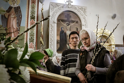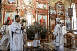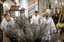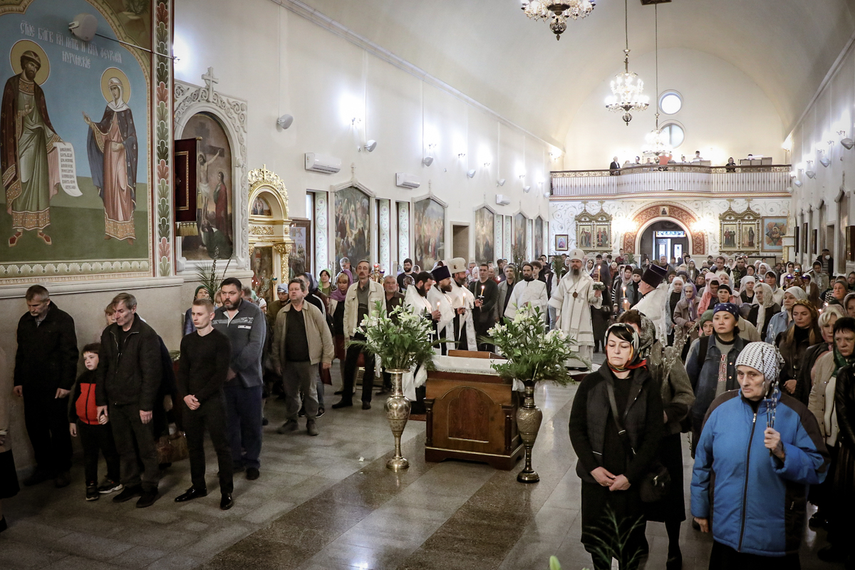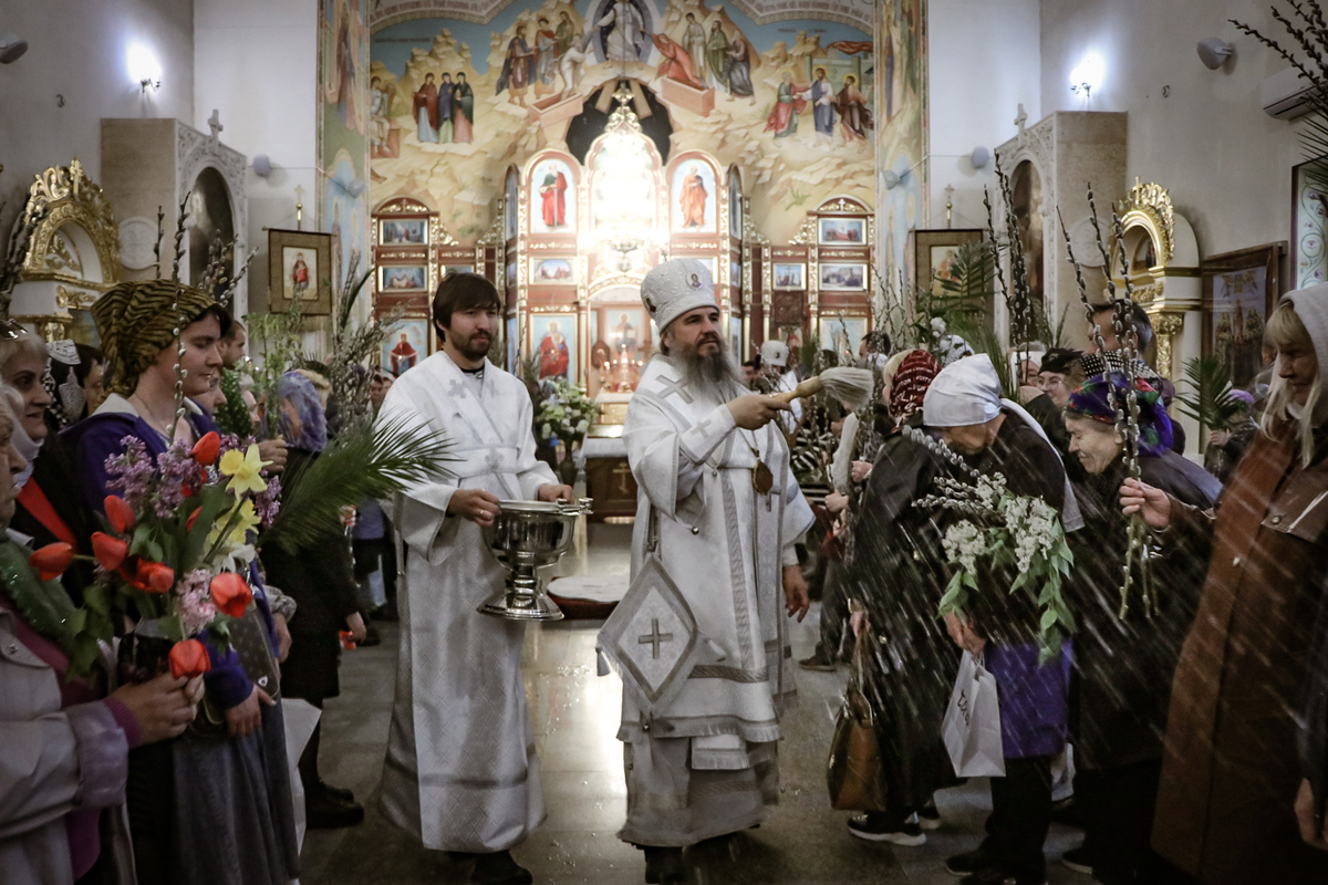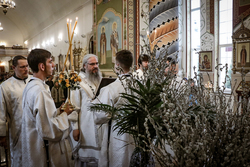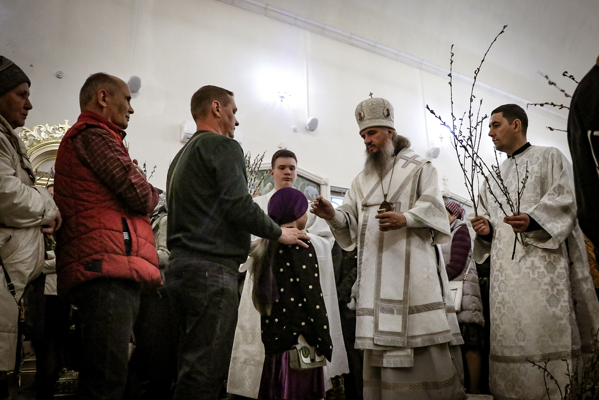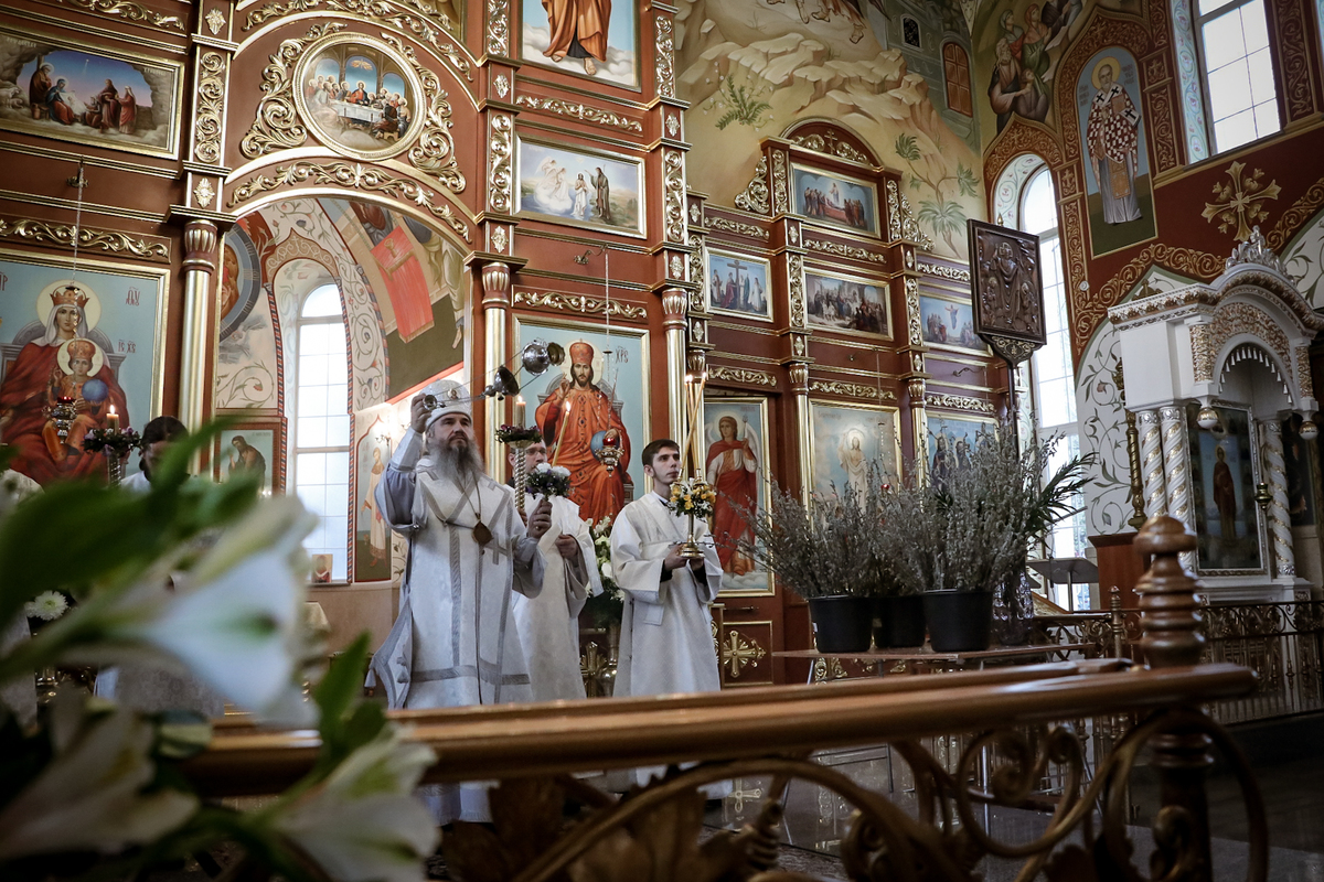 8 апреля, в Лазареву субботу – накануне праздника Входа Господня в Иерусалим, епископ Савватий совершил Всенощное бдение и освятил вайи (пальмовые ветви, которые традиционно заменяются вербными) в Свято-Воскресенском кафедральном соборе.