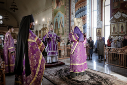 13 апреля, в четверг утром епископ Савватий совершил Литургию Василия Великого в Свято-Воскресенском кафедральном соборе. В Великий четверг Евангельское чтение повествует о Тайной вечери, умовении ног и молитве в Гефсиманском саду.