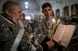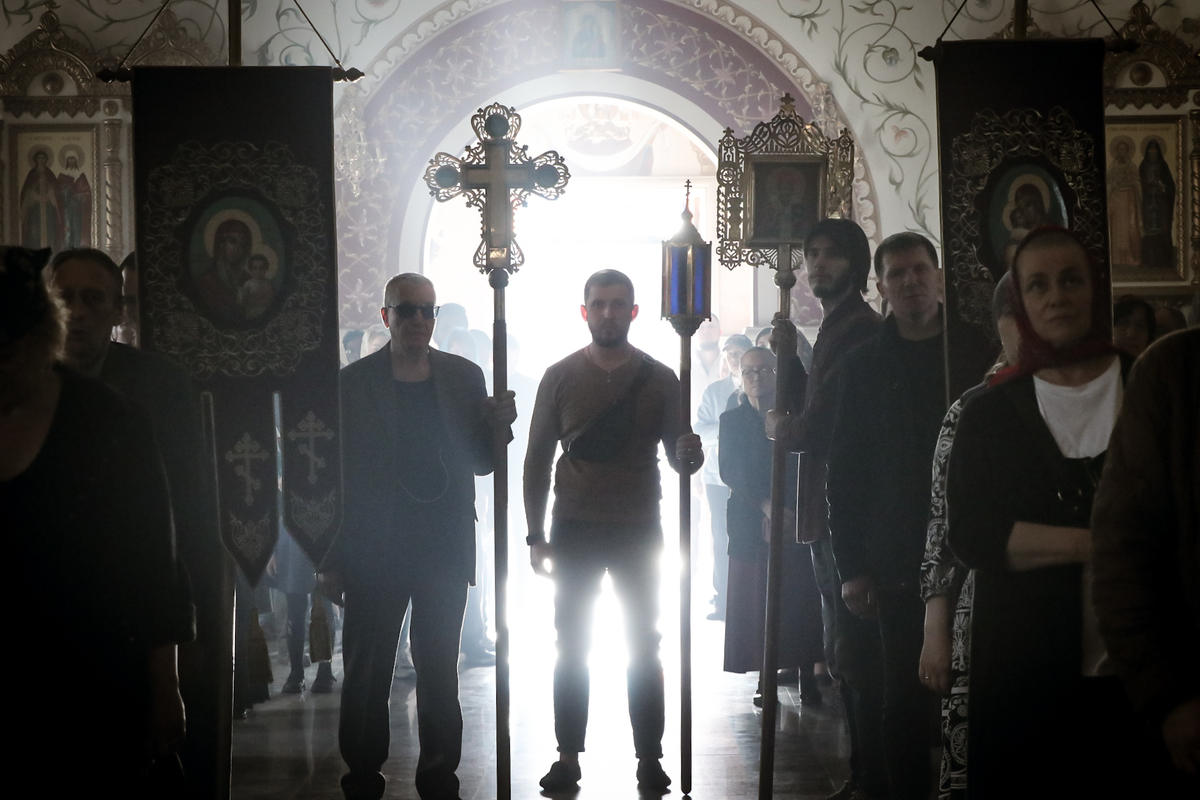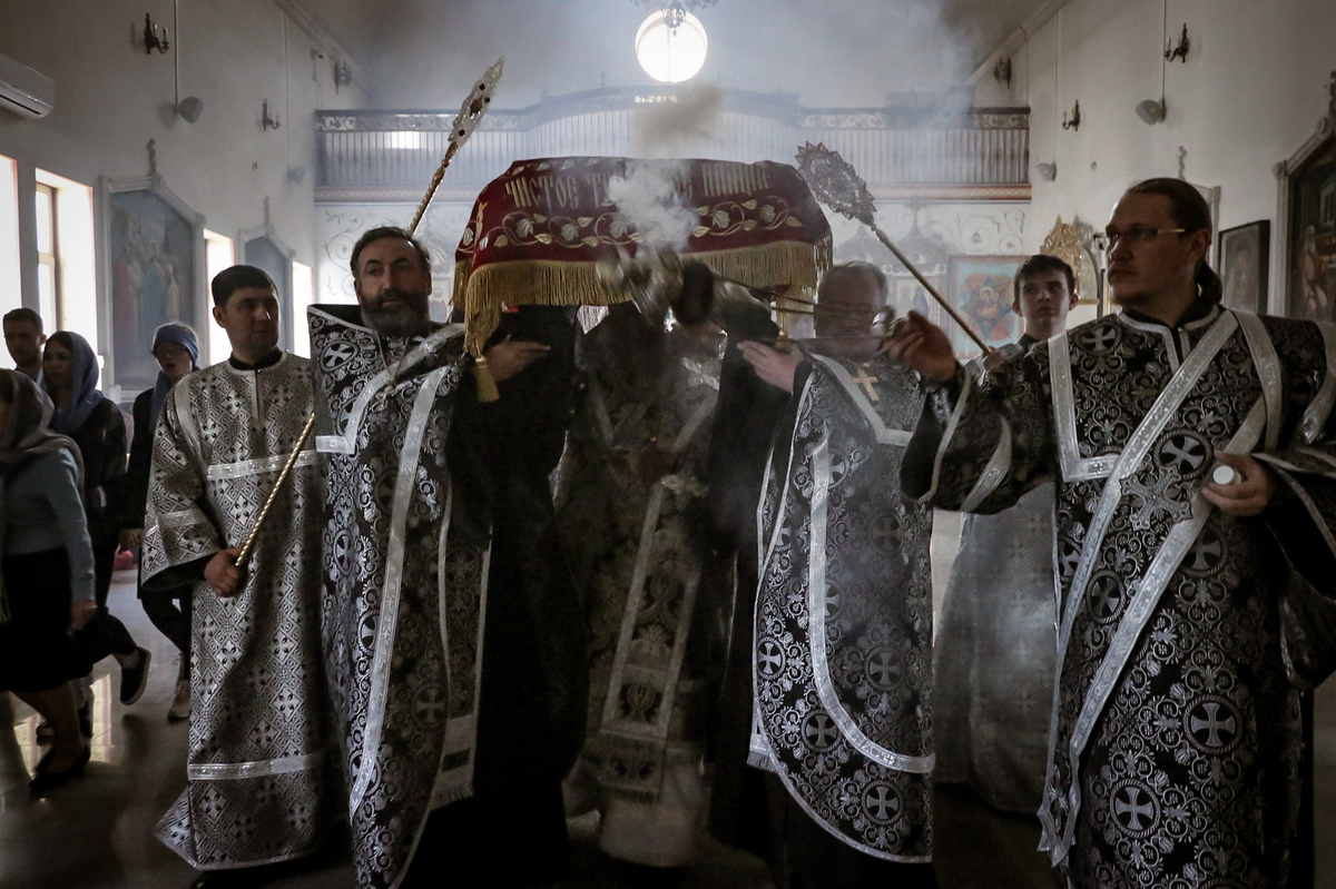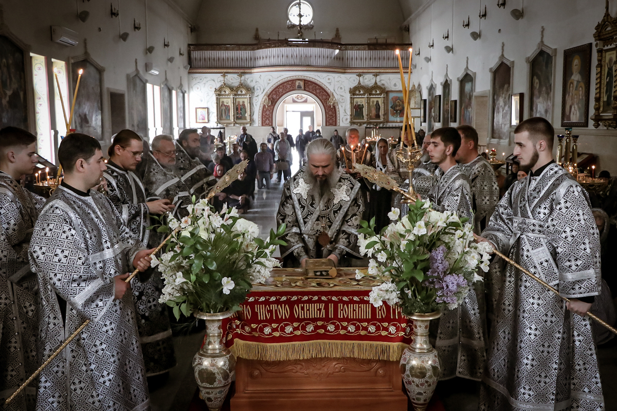 После прочтения канона «На Распятие Господне и плач Пресвятой Богородицы» началась утреня с чином погребения Господа Иисуса Христа. Богослужение Утрени Великой Субботы посвящено сошествию Христа во ад и победе Спасителя над смертью.