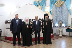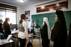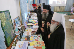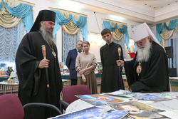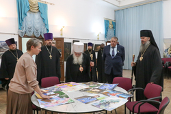 После службы архиереи в сопровождении духовенства и гостей посетили духовный центр кафедрального собора для ознакомления с детскими рисунками, выставленными на конкурс «Мир Божий глазами детей».