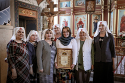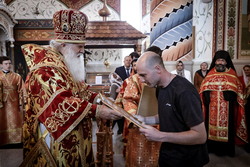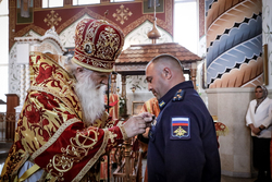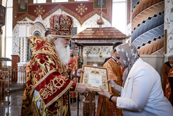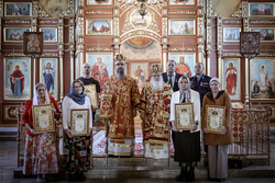 В завершении богослужения владыка наградил медалями преподобного Ираклия Иссык-Кульского III степени военного атташе по вопросам обороны при Посольстве РФ в КР, полковника Довбню Игоря Анатольевича и командира российской военной базы ОДКБ Кант подполковника Куксу Александра Владимировича. Архиерейские грамоты в благословение за усердные труды на благо Бишкекской епархии вручили Кукса Анастасии Вячеславовне, Сулайман Светлане Леонидовне, Гладышеву Виктору Александровичу, Бибик Татьяне Дмитриевне, Лунеговой Ольге Сергеевне.