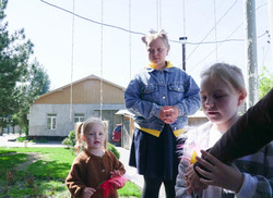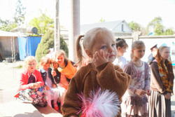После спектакля предложили всем немного отвлечься и сыграть в веселые игры. Дети своим весельем заражали всех окружающих и, несмотря на то, что поначалу все скромно стояли в сторонках, вскоре все больше людей стали повторять за ними движения танца-игры.