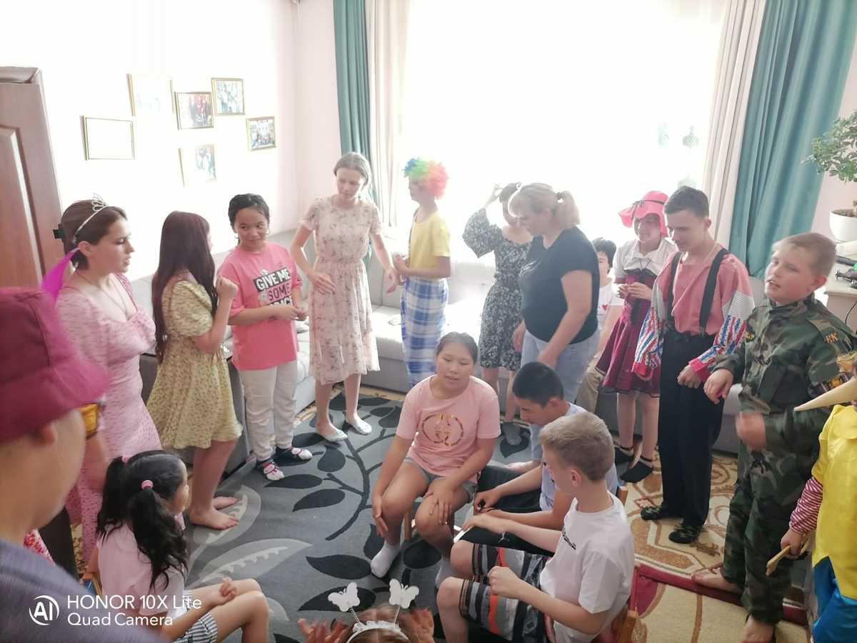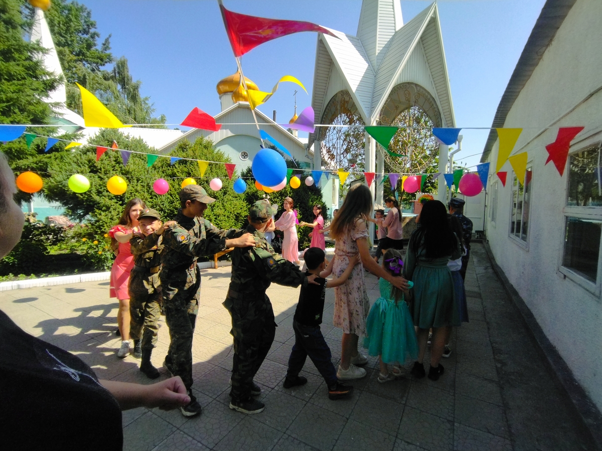 Затем кадеты Сокулукского храма отправились в детский дом села Маловодное. Ребята поставили развлекательную сценку со сказочными персонажами. Детям вручили подарки, канцелярские товары, мягкие игрушки и угостили мороженым.