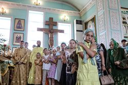 14 июня, епископ Савватий совершил Божественную литургию в храме святого праведного Иоанна Кронштадтского в с. Манас. По завершении литургии вместе со всем народом Его Преосвященство совершил крестный ход вокруг храма, а затем обратился к участникам богослужения с проповедью.