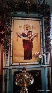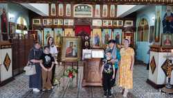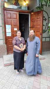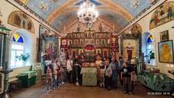 Был уже вечер и батюшка Олег открыл нам храм, где мы приложились к иконам, сделали общее фото и пообщались с батюшкой.