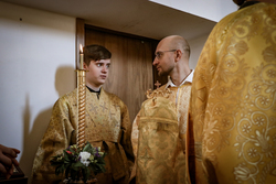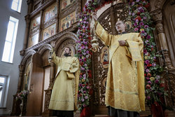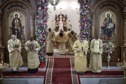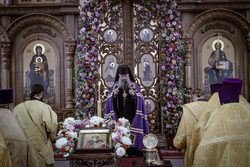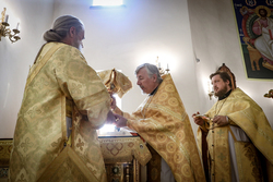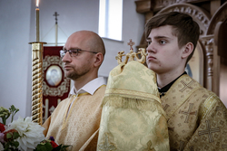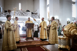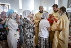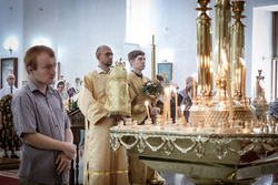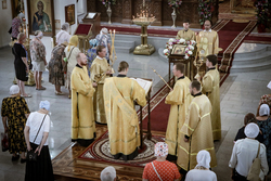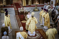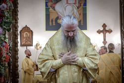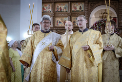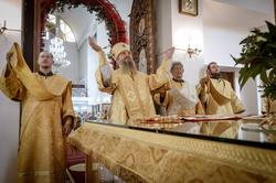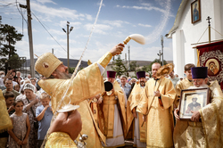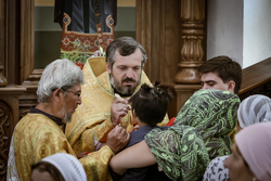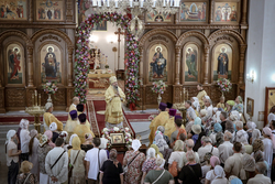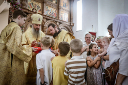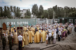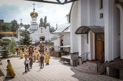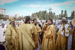 И вот раздался звон колоколов, громогласно запел верхний хор, и торжественная служба началась: три диакона попеременно возглашали ектеньи на разных языках, с особым величием и торжеством были прочитаны Евангелие и Апостол, соборно звучали «Верую» и «Отче наш». В этот день из алтаря было вынесено три Чаши со Святыми Дарами, и многие верующие причастились Тела и Крови Христовой. В конце службы епископ Савватий поблагодарил всех за соборную молитву и обратился к пастве с проповедью: "...Сегодня мы празднуем день святого равноапостольного великого князя Владимира, День Крещения Руси и День епархии Кыргызстана... Крестившись, святой князь Владимир обрел не только зрение физическое, но и духовное. Это был уже другой человек. Каковы были обычаи того времени? Люди, живущие в княжестве, пока имели пропитание, жили в своих пределах, а если оскудели закрома, то собирали войско, объезжали соседние страны, грабили или облагали налогом, собирали добычу и возвращались к себе. После Крещения у князя Владимира не только не было желания грабить других, но даже своё он не желал иметь. Он раздавал нищим княжеское имущество, он собирал столы и кормил сотни тысяч нуждающихся человек. Он отказался казнить преступников: «Как я – грешный человек – буду вершить суд над людьми?» Так преобразился князь Владимир. За князем пошла дружина, за дружиной народ…".