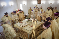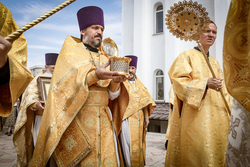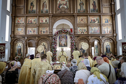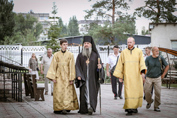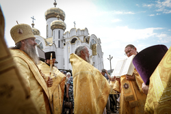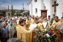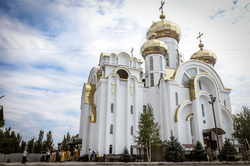 Когда подъезжаешь к собору святого равноапостольного великого князя Владимира, видна вся красота его и мощь. Особенно прохладно у подножия гор в это праздничное утро. Всё вокруг дышит праздником: и золотые купола храма, и ожидающие приезда правящего архиерея в таком же золотом облачении священнослужители и алтарники. Заметно, что многое изменилось во Владимирском соборе: обновилась прихрамовая территория, во всю идет строительство здания православной гимназии...