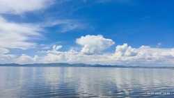 После принятия водных и солнечных ванн отправились на теплоходе на середину озера Иссык-Куль. С палубы теплохода открывался красивый вид на синее озеро, берег с зелёными садами среди домов и высокими, горными, снежными вершинами вдали. Над головой синее небо, а ласковый морской ветер приятно обдувает свежестью... Красота и благодать!