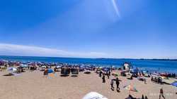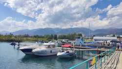 Пляж на Иссык-Куле пестрился разноцветными зонтиками. Множество людей расположились по всему берегу, с удовольствием купаясь в живительных водах Иссык-Куля, спасаясь от жары.