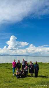 Последняя остановка была на смотровой площадке Орто-Токойского водохранилища. Сделав общее фото группы на память на фоне с ярко зелёной травой на дне водохранилища, с грустью отметили, что воды уже опять мало.